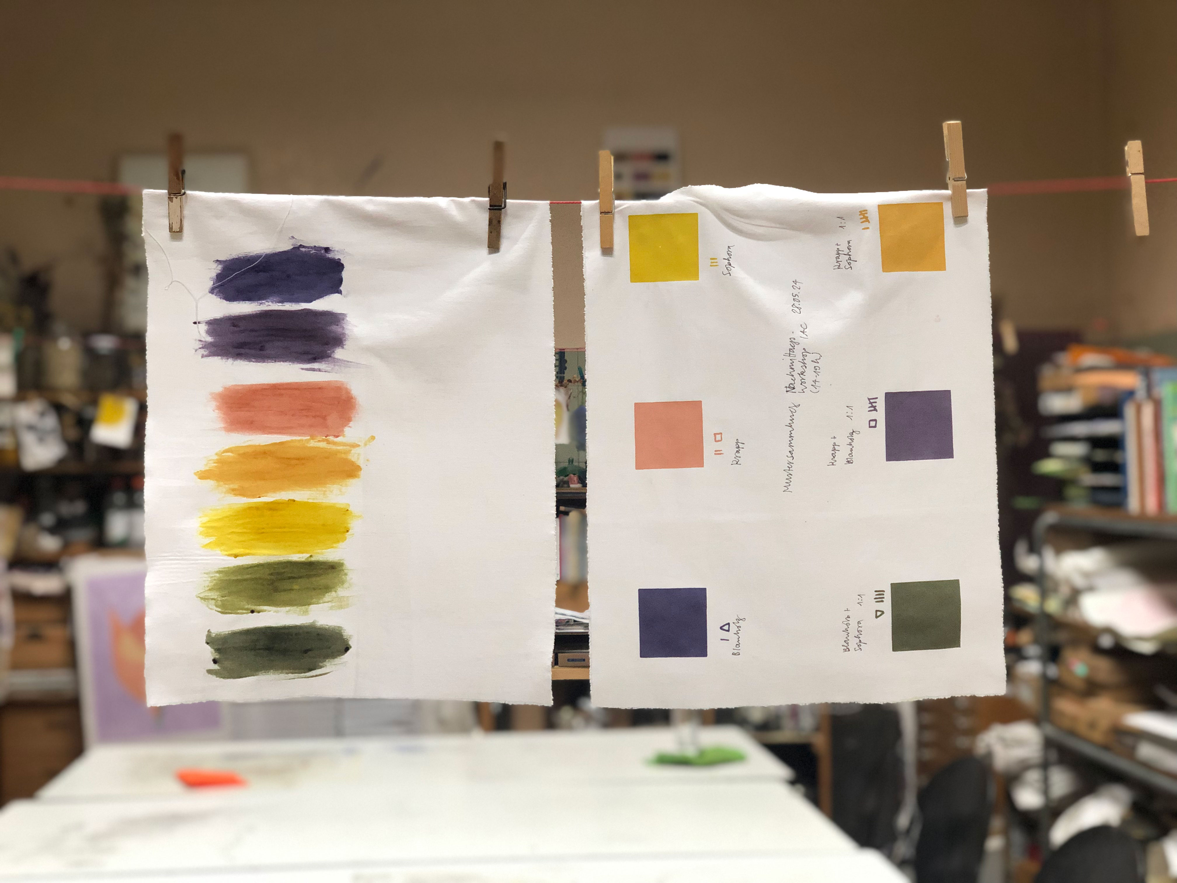 Der Intensivkurs bietet dir eine umfassende Einführung – von der Vorbereitung natürlicher Textilien (Entbasten, Tanninbad, Metallbeize), über das Extrahieren pflanzlicher Farbstoffe bis hin zum Binden der Farben zu Druckpasten. Im zweiten Kursteil befassen wir uns vertieft mit der Anwendung der Textilfarben mittels Siebdruck, Stempeldruck oder Pinsel und deren Fixierung für langlebige, licht- und waschechte Ergebnisse.